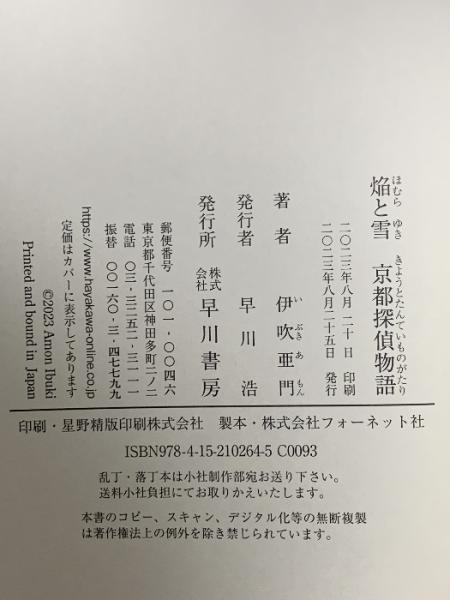 焔と雪 京都探偵物語 早川書房 伊吹 亜門