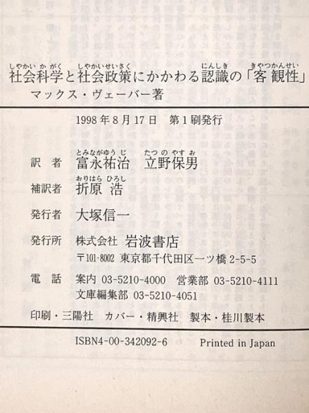 社会科学と社会政策にかかわる認識の「客観性」 (岩波文庫 白 209-2) 岩波書店 マックス ヴェーバー
