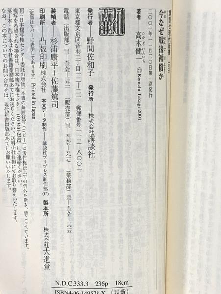 今なぜ戦後補償か (講談社現代新書 1578) 講談社 高木 健一