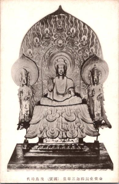 1001175■戦前 絵葉書■国宝 金堂金堂釈迦三尊像(仏像)