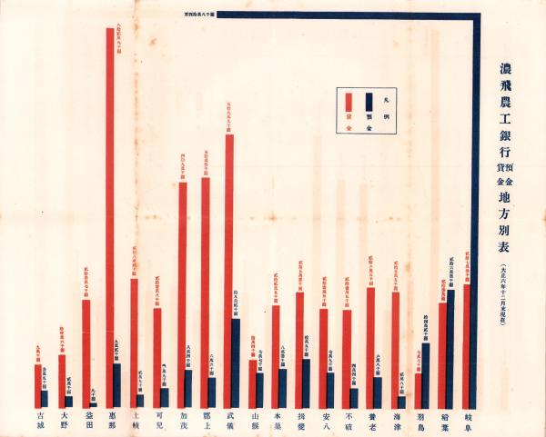 • 解説 *29×36cm、裏面「濃飛農工銀行預金貸金地方別表」