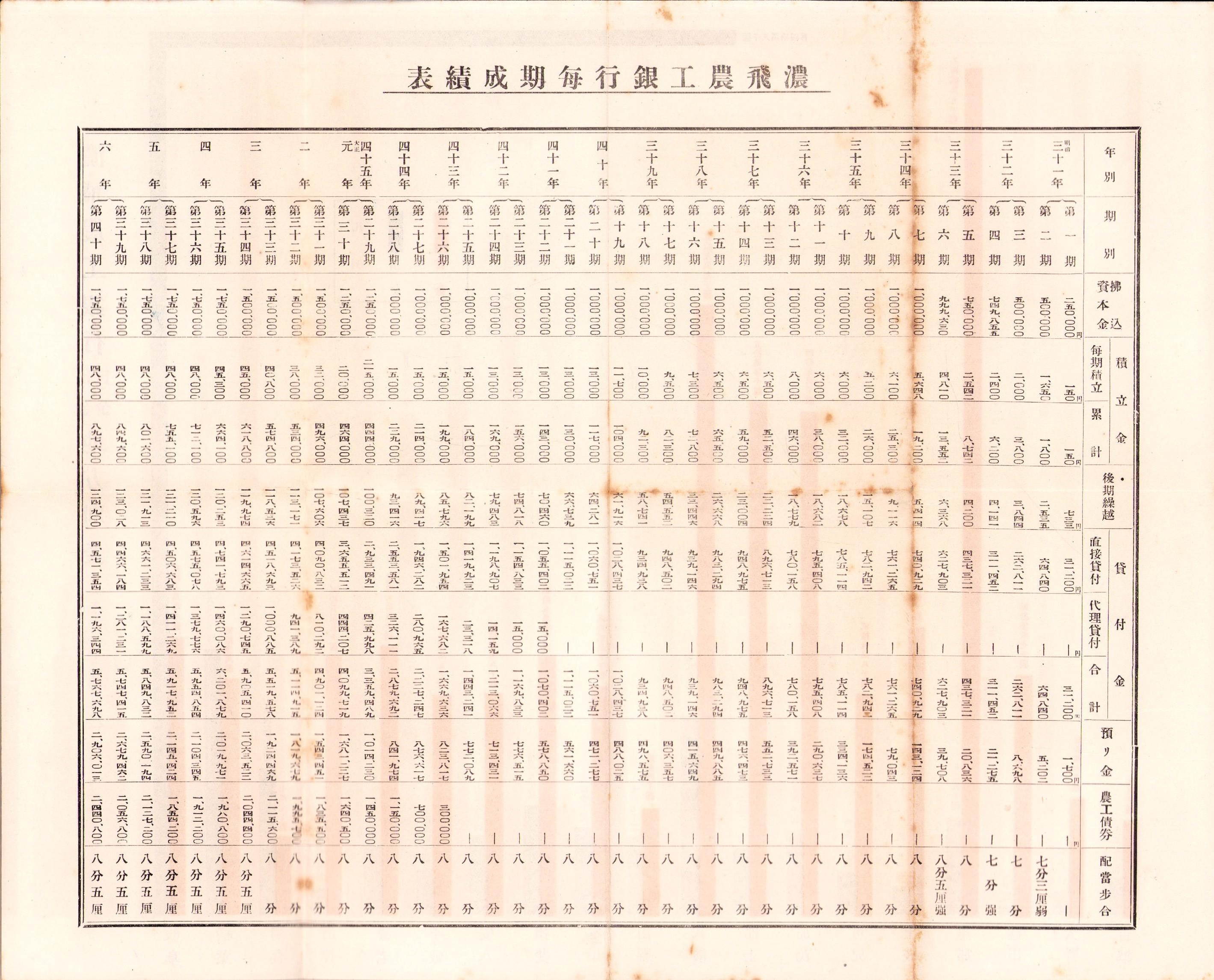(一枚刷)濃飛農工銀行毎期成績表(岐阜市)