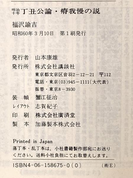 明治十年 丁丑公論・瘠我慢の説 (講談社学術文庫 675) 講談社 福沢 諭吉