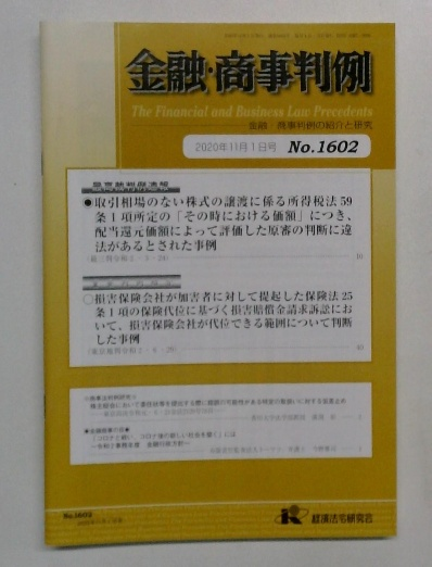No. 1602 金融・商事判例