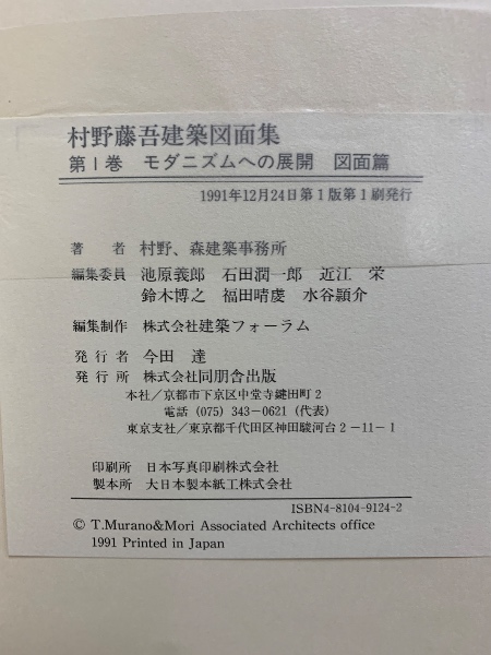 村野藤吾建築図面集  全8巻揃