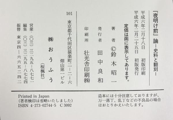 『夜明け前』-史料と翻刻-鈴木昭一 (株)おうふう 平成6年