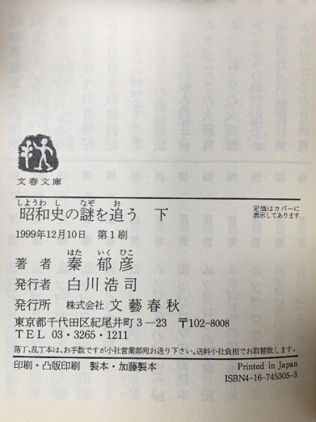 昭和史の謎を追う 下 文藝春秋 秦 郁彦