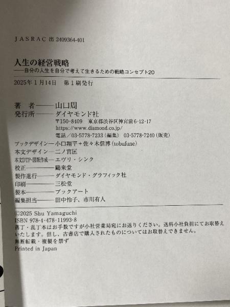 人生の経営戦略――自分の人生を自分で考えて生きるための戦略コンセプト20 ダイヤモンド社 山口 周