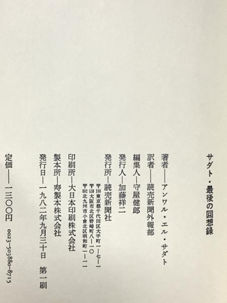 サダト・最後の回想録 読売新聞社 アンワー・アル・サダト