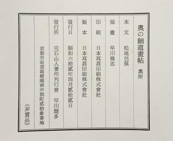 奥の細道畫帖 発行:完石山人著作刊行會 昭和62年【非売品】