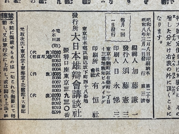 少年俱樂部 出世希望號 昭和8年3月 第二十巻第三號