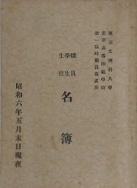 東京文理科大学・東京高等師範学校・第一臨時教員養成所 職員・学生・生徒 名簿 昭和六年五月末日現在