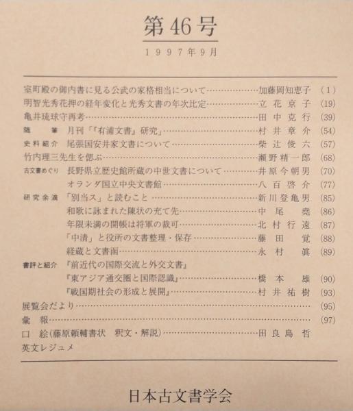 古文書研究 第46号 室町殿の御内書に見る公式の家格相当について…ほか