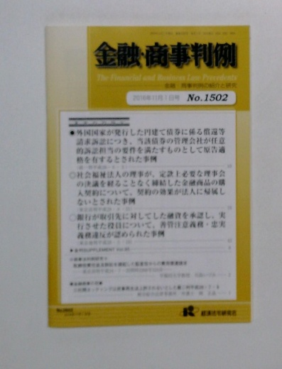 金融・商事判例 2016年11月1日号 No.1502