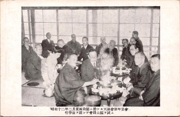 1001257■戦前 絵葉書■昭和12年2月其両公園に於ける天満会新年宴会 竹亭