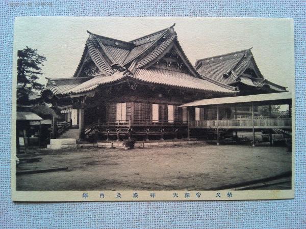 【絵葉書】昭和四年六月 拝殿落城記念 柴又 題経寺(帝釈天) 絵葉書3枚 袋付