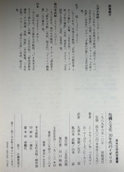 危機と文化 30年代のイギリス <英米文学研究叢書>