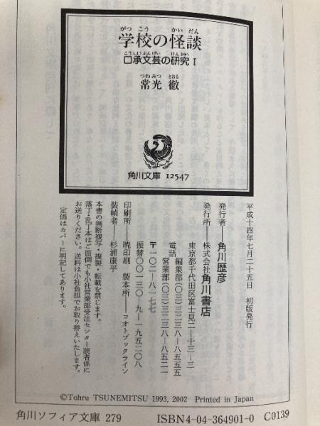 学校の怪談 口承文芸の研究I (角川ソフィア文庫 279 怪BOOKS) KADOKAWA 角川書店装丁室