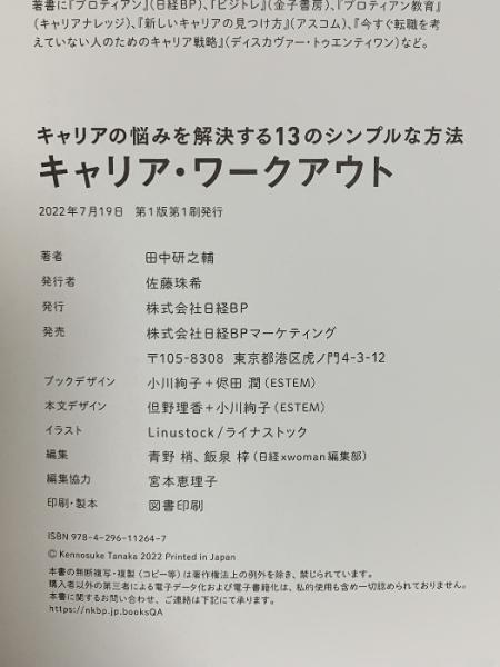 キャリアの悩みを解決する13のシンプルな方法 キャリア・ワークアウト 日経BP 田中研之輔