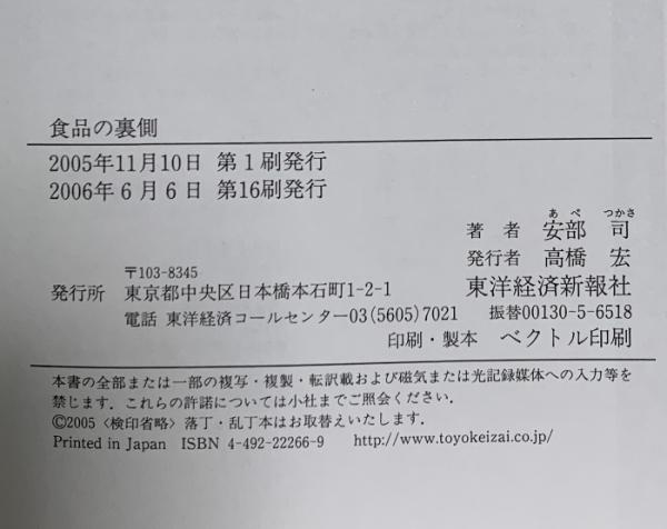食品の裏側―みんな大好きな食品添加物 東洋経済新報社 安部司