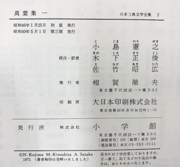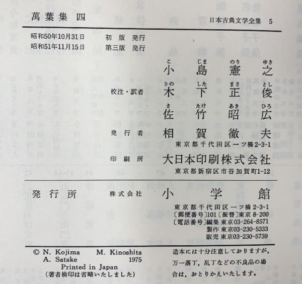[萬葉集](1~4/全4冊セット)小学館版日本古典文学全集 小学館 昭和50年~