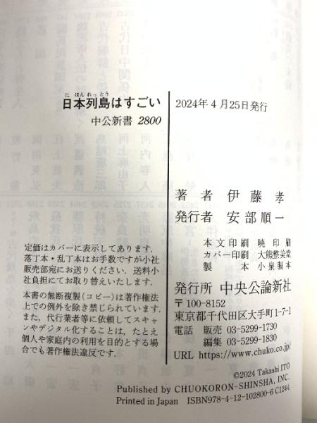 日本列島はすごい-水・森林・黄金を生んだ大地 (中公新書 2800) 中央公論新社 伊藤 孝