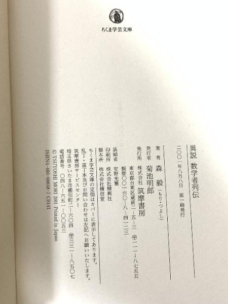 異説数学者列伝 (ちくま学芸文庫 モ 6-1) 筑摩書房 森 毅