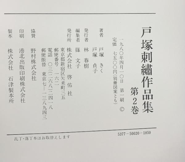 戸塚刺繍作品集第2巻 戸塚きく・戸塚貞子 啓佑社 1980年