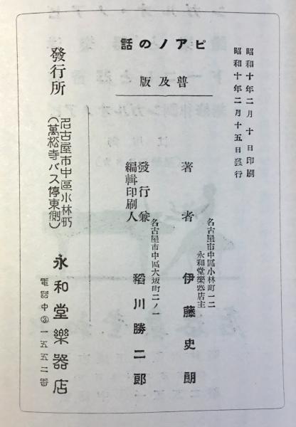 名古屋市中区小林町・永和堂楽器店発行『ピアノの話』