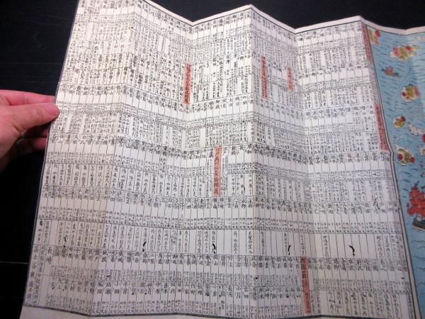 広げると37.5cm×1m90cm。木版刷り。虫食いあり。状態は並上。