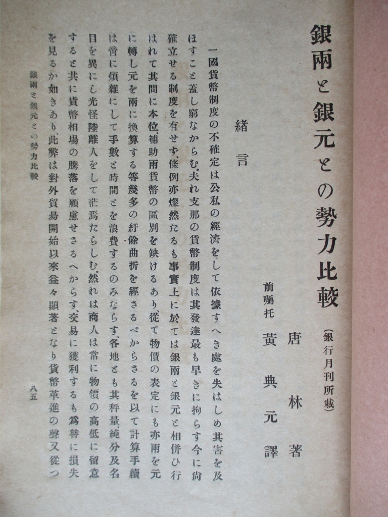 千九百二十一年對支通商條例/公司條例/銀兩と銀元との勢力比較
