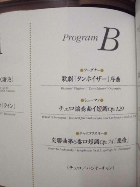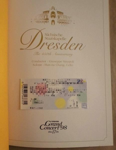 • 著者 東芝グランドコンサート '98 ドレスデン国立歌劇場管弦楽団 指揮:ジュゼッペ・シノーポリ チェロ:ハンナ・チャン 1998年1月24日~2月8日、愛知県芸術劇場コンサートホール(プログラム B) ほか