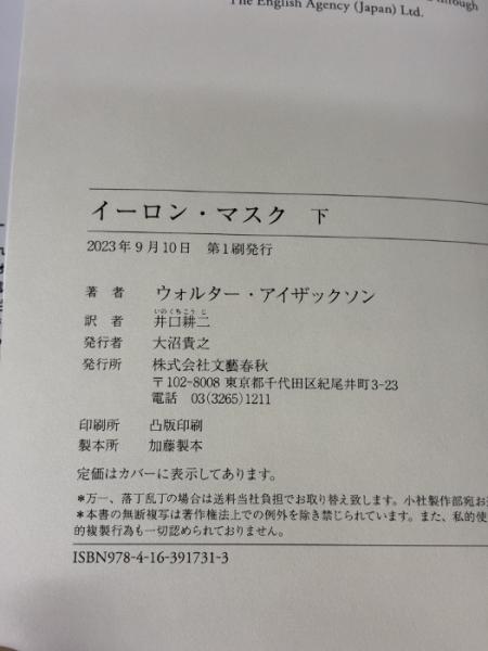 イーロン・マスク 下 文藝春秋 ウォルター・アイザックソン