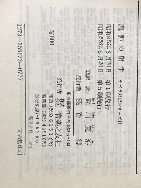 オペラ対訳シリーズ〈第17〉魔弾の射手 (1970年)