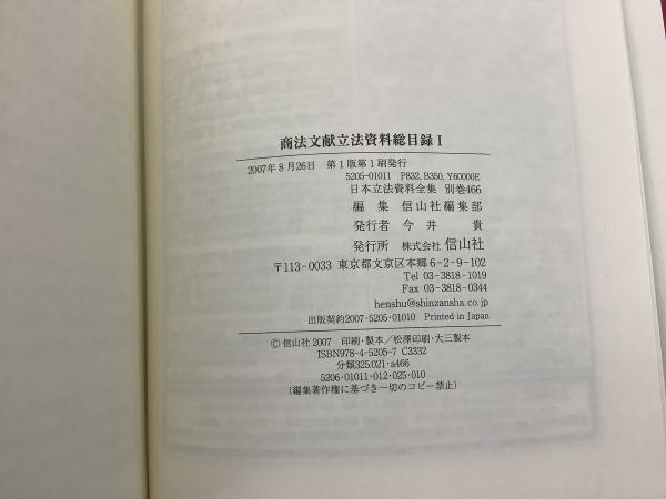 【除籍本】日本立法資料全集 別巻 466 商法文献 立法資料総目録1