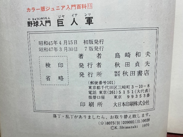カラー版ジュニア入門百科野球入門 巨人軍