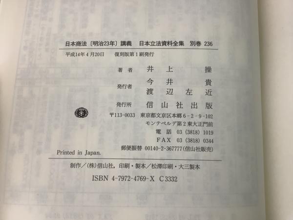 【除籍本】復刻版 日本立法資料全集 別巻 236 日本商法講義