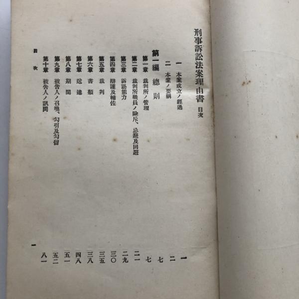 刑事訴訟法案理由書 第四十五回帝国議会提出(日本大学・日本法政学会・大正13年)詳細は目次画像参照
