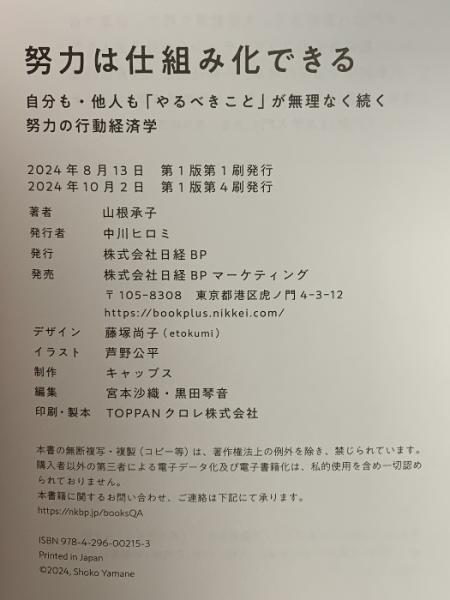 努力は仕組み化できる 自分も・他人も「やるべきこと」が無理なく続く努力の行動経済学 日経BP 山根 承子