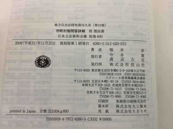 【除籍本】復刻版 日本立法資料全集 別巻 600 市町村制問答詳解 附 理由書