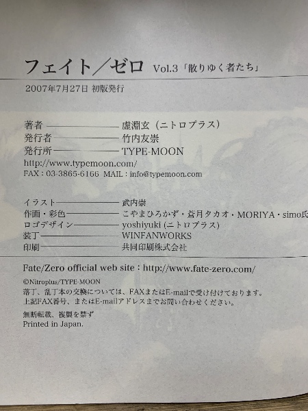 Fate/Zero Vol.3 -散りゆく者たち-