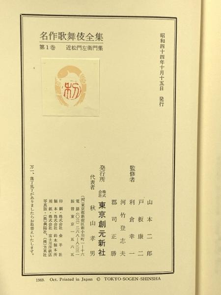 名作歌舞伎全集 不揃い 22巻セット 東京創元新社 近松門左衛門集 丸本時代物集 並木五瓶集 他