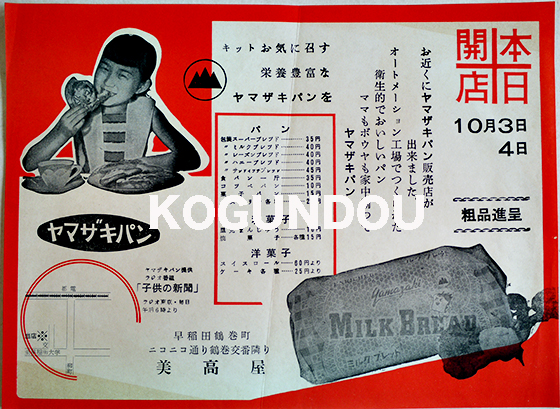 「ヤマザキパン本日開店」広告チラシ B5判美品 早稲田鶴巻町美高屋 昭和30年代