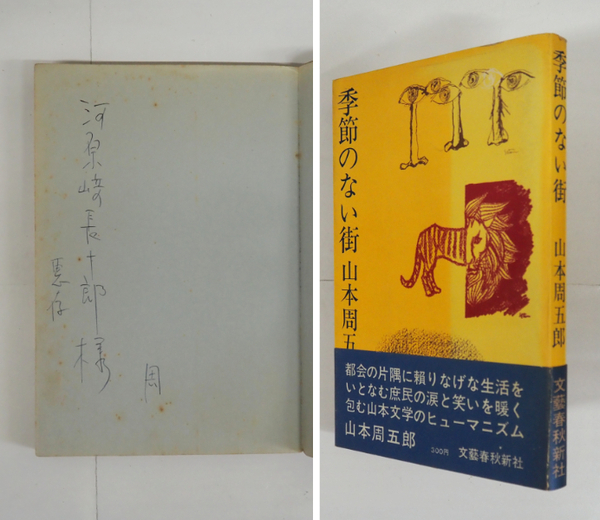 季節のない街 河原崎長十郎宛ペン署名入「周」 初カバー帯 本文日焼少シミ有 帯背少日焼