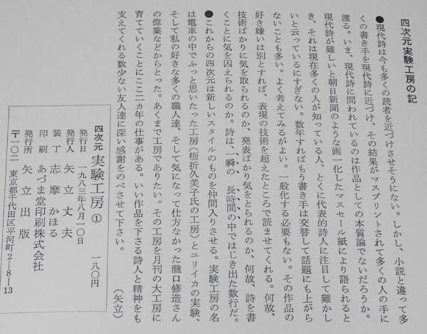 • 解説 四次元実験工房(1) 矢立出版 1983年8月発行 B5判.
