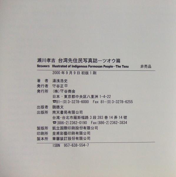 瀬川孝吉台湾先住民写真誌 : ツオウ編 初版2刷