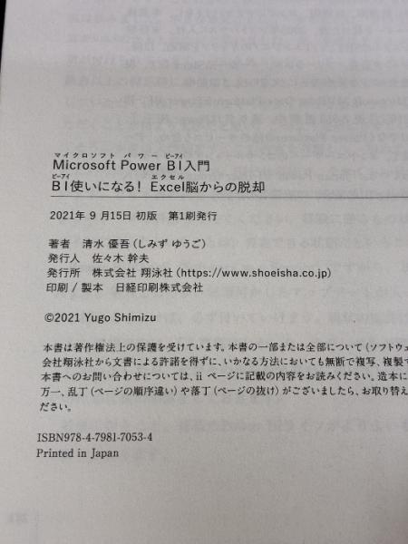 Microsoft Power BI入門 BI使いになる! Excel脳からの脱却 翔泳社 清水 優吾