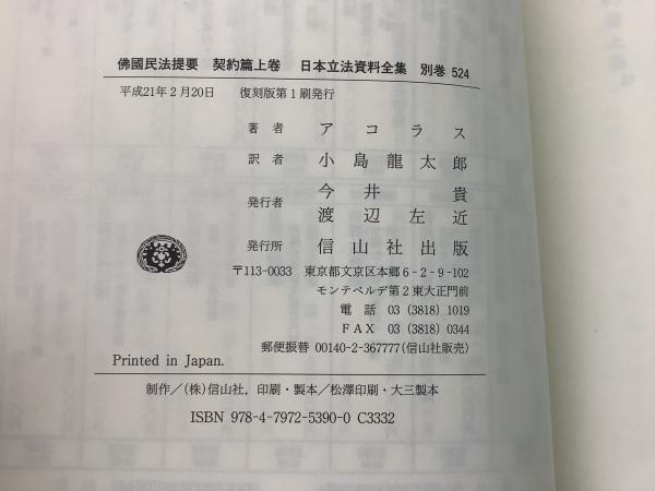 【除籍本】復刻版 日本立法資料全集 別巻515・522・524 仏国民法提要 3冊セット