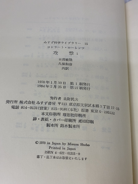 攻撃 1: 悪の自然誌 (みすず科学ライブラリー 15) みすず書房 コンラート ローレンツ