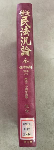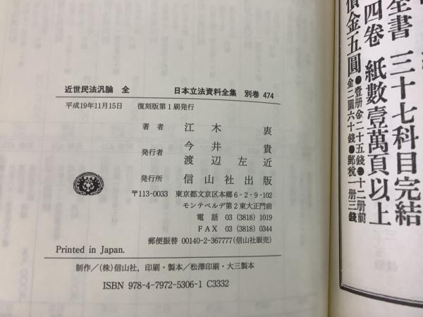 【除籍本】復刻版 日本立法資料全集 別巻 474 近世民法汎論 全
